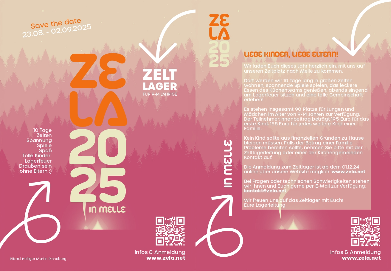 endlich ist es soweit und ihr könnt euch für das ZELA 2025 anmelden! Das Zeltlager findet dieses Jahr vom 23.08. - 02.09.2025 statt und wir fahren auf den schönen Zeltplatz nach Melle! Zur Anmeldung gelangt ihr über den Link am Ende dieses Beitrages.